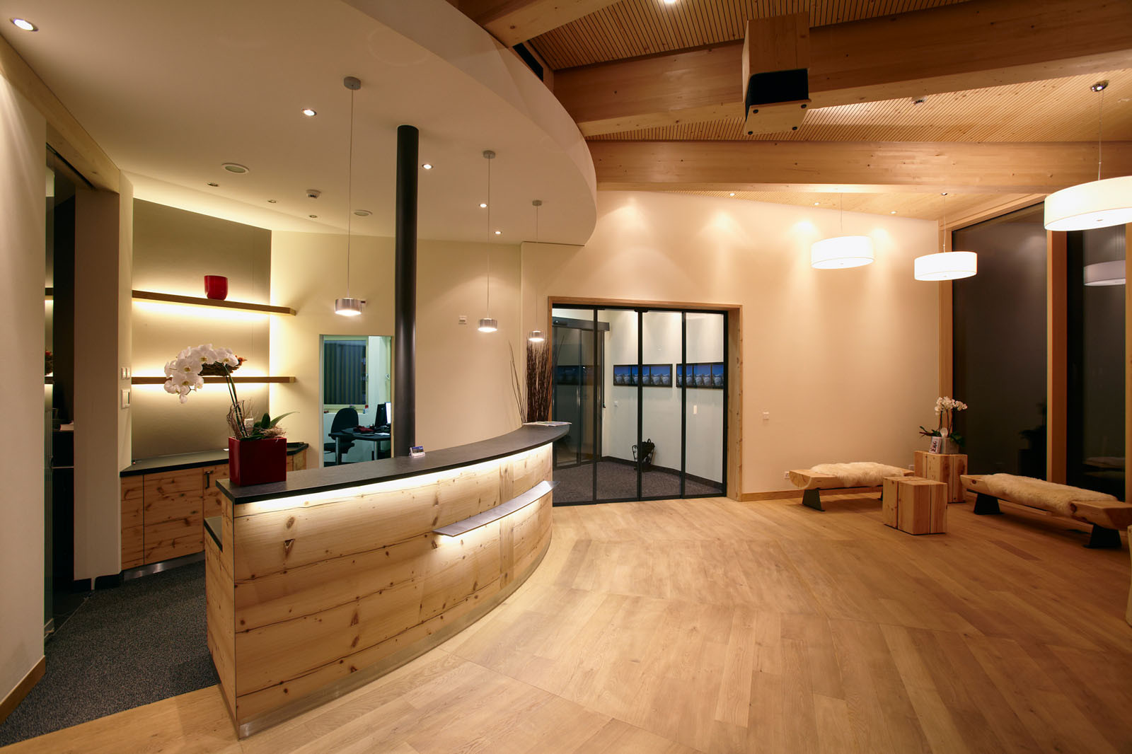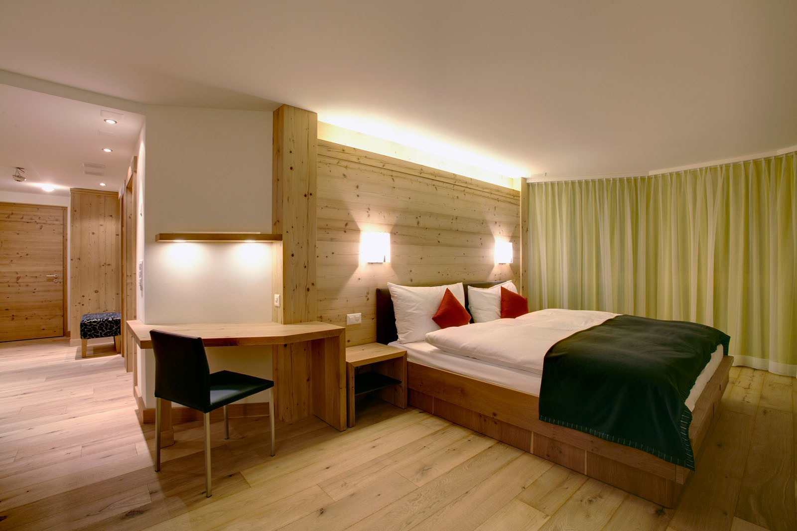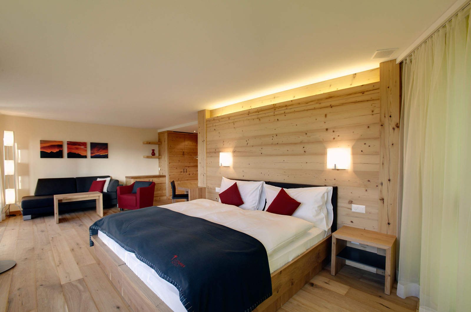 Ruhe ist ein besonderes Gut – sie ermöglicht, sich selbst Raum zu geben. Das Hotel Royal ist ein Spiegel dieser umfassenden Ruhe. In den Suiten des 4-Sterne-Superior-Hotel auf der Riederalp, im Wellnessbereich und im Restaurant hat das BAUATELIER12 die Natur eingefangen. Zugleich bietet das Hotel ansprechendes Design, Komfort und höchsten Genuss. Ein Grossteil des Hauses ist aus heimischen Baumaterialien errichtet und strahlt deshalb so viel Natürlichkeit aus. Regionales Altholz und Eichenholz-Parkettboden sowie Wandelemente aus Holz verleihen dem 4*S-Hotel auf der Riederalp ein edles Ambiente mit hohem Wohlfühlfaktor. Aktzente setzen lediglich dunkle und rote Sitzmöbel sowie dezente Accessoires. Unterirdisch ist das Hotel mit einem Rundbau verbunden, in dem sich die Réception und das Royal-Restaurant befinden. Arvenholz und die Konzentration auf wenige Raumelemente lassen auch hier behagliche Natürlichkeit aufleuchten. Zudem ist die Bergwelt durch die Panoramafenster im Gourmetrestaurant Teil des Genusserlebnisses.