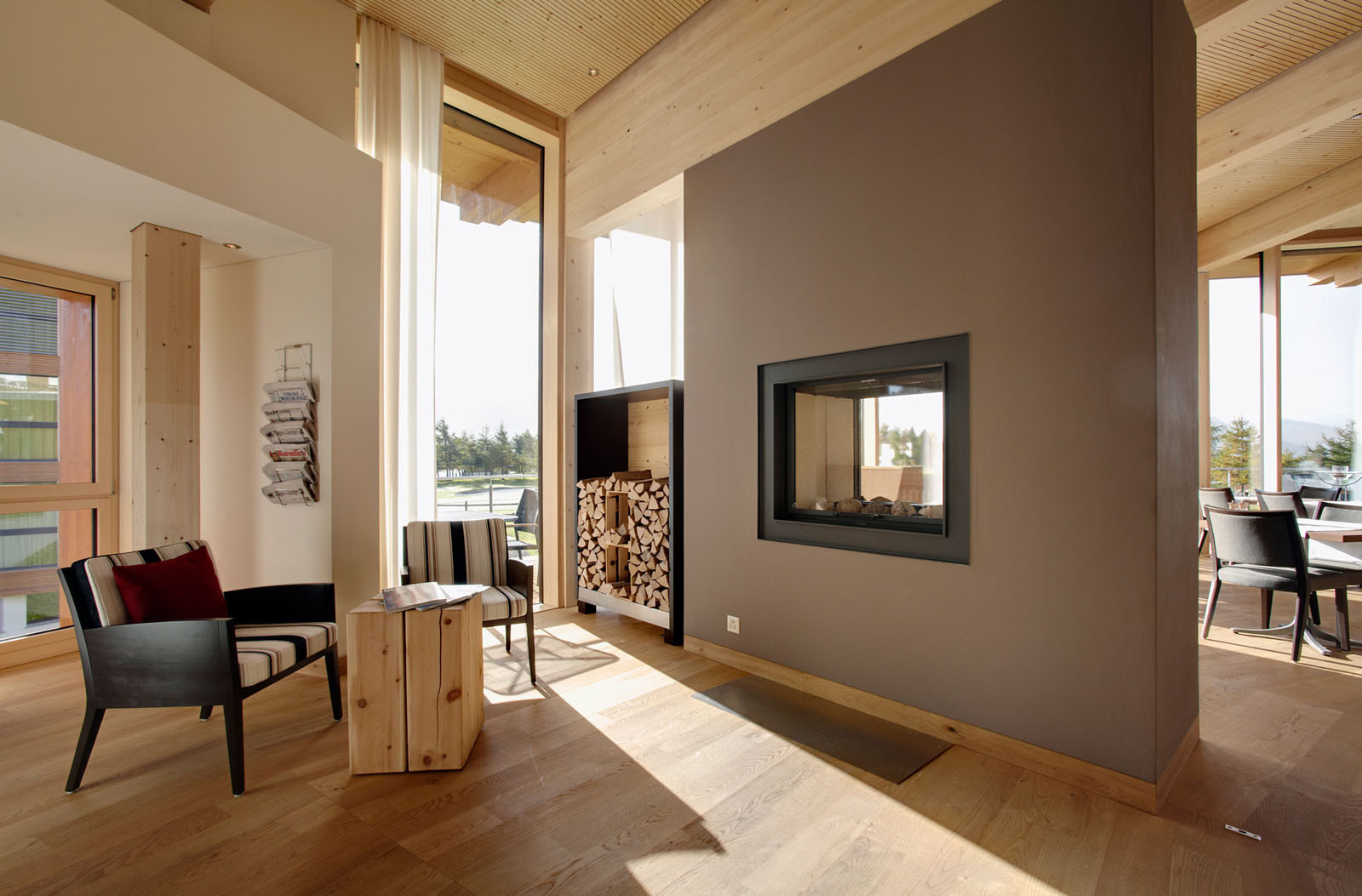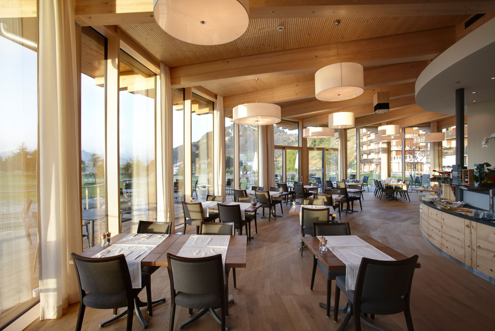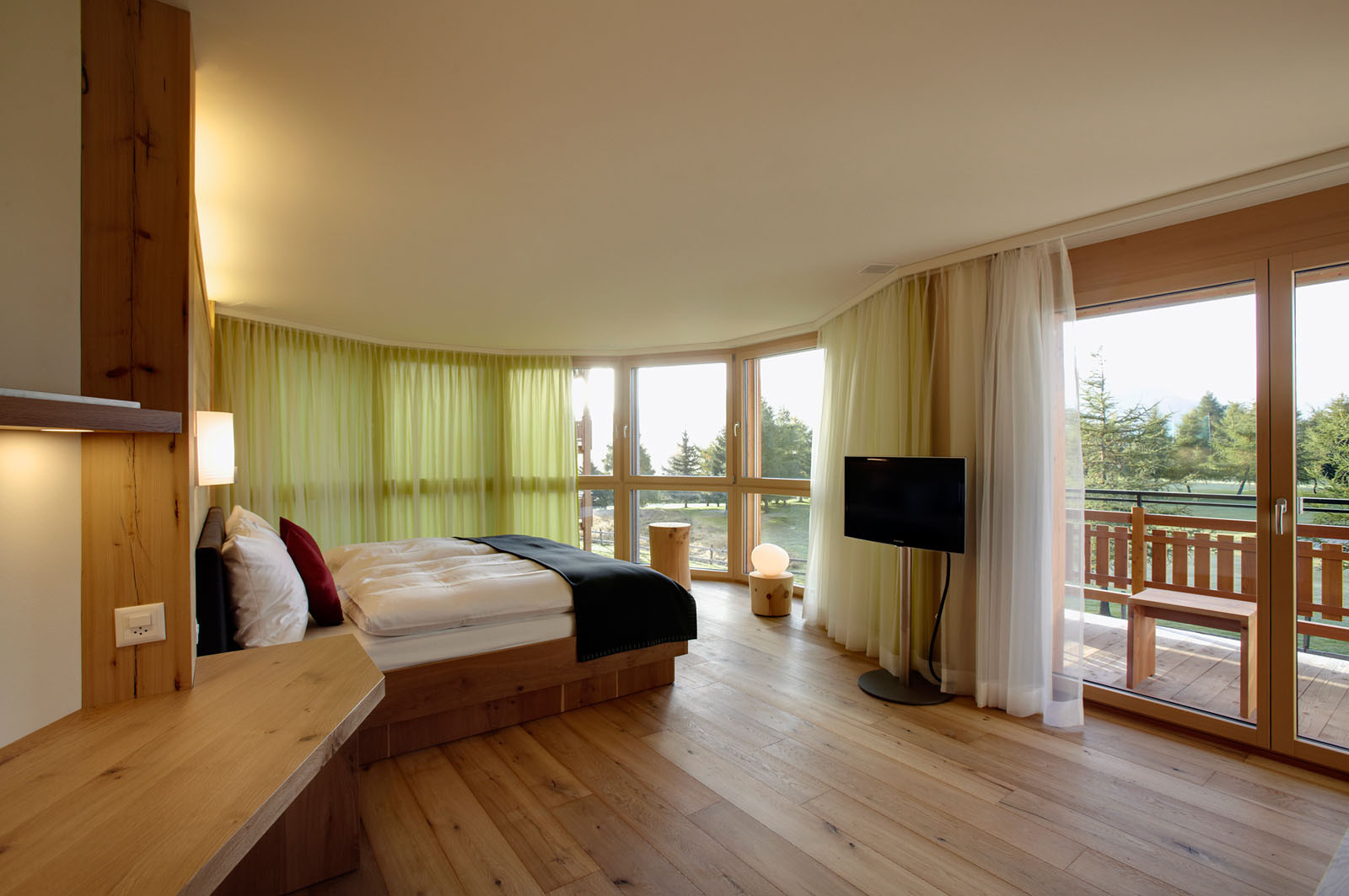 Ruhe ist ein besonderes Gut – sie ermöglicht, sich selbst Raum zu geben. Das Hotel Royal ist ein Spiegel dieser umfassenden Ruhe. In den Suiten des 4-Sterne-Superior-Hotel auf der Riederalp, im Wellnessbereich und im Restaurant hat das BAUATELIER12 die Natur eingefangen. Zugleich bietet das Hotel ansprechendes Design, Komfort und höchsten Genuss. Ein Grossteil des Hauses ist aus heimischen Baumaterialien errichtet und strahlt deshalb so viel Natürlichkeit aus. Regionales Altholz und Eichenholz-Parkettboden sowie Wandelemente aus Holz verleihen dem 4*S-Hotel auf der Riederalp ein edles Ambiente mit hohem Wohlfühlfaktor. Aktzente setzen lediglich dunkle und rote Sitzmöbel sowie dezente Accessoires. Unterirdisch ist das Hotel mit einem Rundbau verbunden, in dem sich die Réception und das Royal-Restaurant befinden. Arvenholz und die Konzentration auf wenige Raumelemente lassen auch hier behagliche Natürlichkeit aufleuchten. Zudem ist die Bergwelt durch die Panoramafenster im Gourmetrestaurant Teil des Genusserlebnisses.