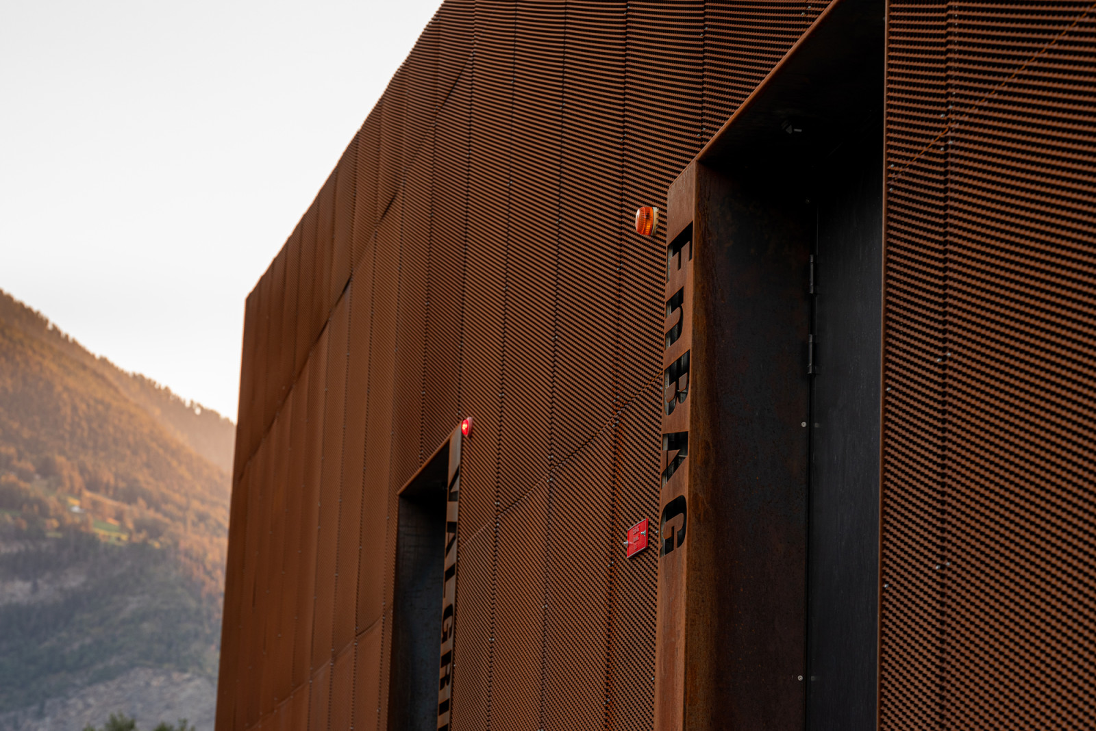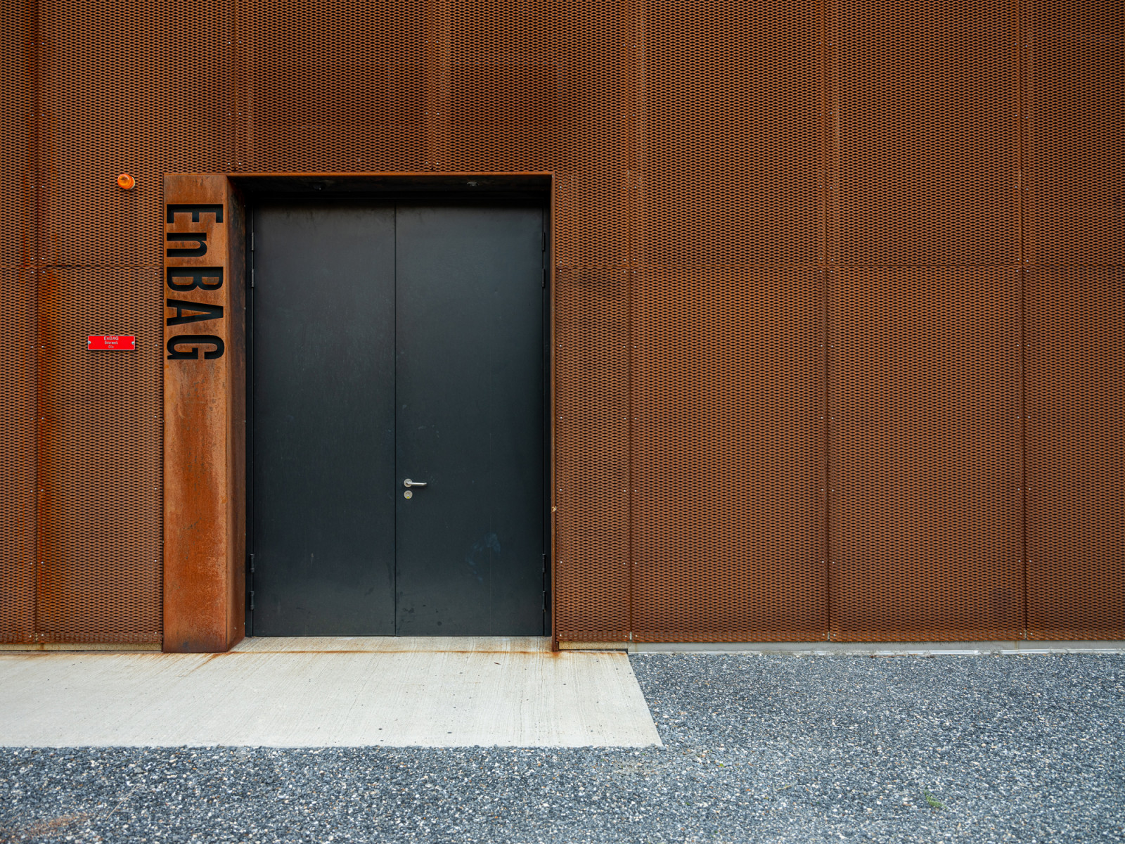 Der neue zweigeschossige Massivbau ist zur Hälfte unterirdisch und in seiner Formgebung zurückhaltend, bescheiden und zweckmässig. Eine vorgehängte Cortenstahlfassade fügt sich harmonisch in den angrenzenden Grünraum ein. Als wetterfester Baustahl ist er unempfindlich gegenüber Witterungseinflüssen und mit seiner charakteristischen Patina setzt er einen klaren Akzent in seiner unmittelbaren Umgebung. Der Cortenstahl überzeugt durch seine natürliche Erscheinung und Lebendigkeit. Er erfordert keinen Unterhalt. Das Dach zeichnet sich durch eine vollflächig integrierte Photovoltaik-Anlage aus.