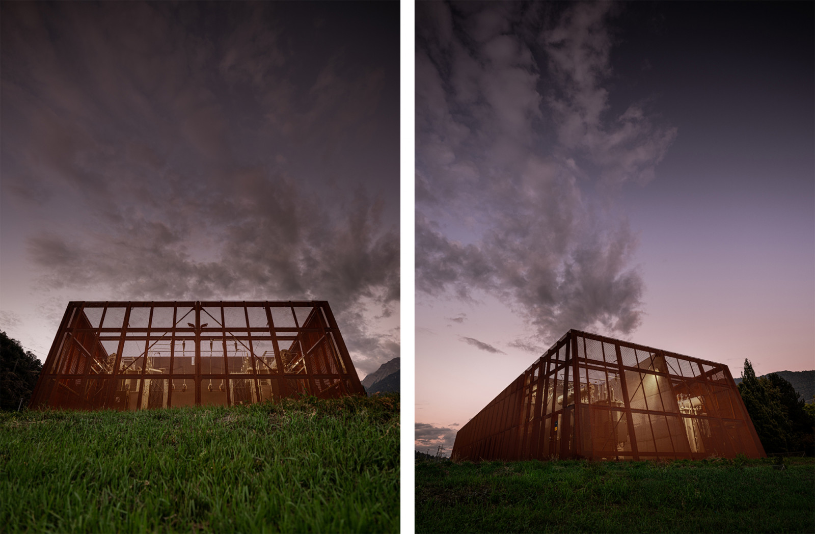 Das Hauptgestaltungselement des neuen Unterwerks sind die beiden offen gestalteten Trafoanlagen im Westen der Anlage. Die beiden Trafos bleiben hinter dem Streckmetall nach wie vor sichtbar und sollen bewusst zur öffentlichen Einsichtnahme in die ansonsten versteckte Anlagentechnik anregen. In der Dämmerung bzw. Nacht kann das Thema Licht bzw. die Elektrizität mittels zeitgesteuerten Beleuchtungselementen besonders inszeniert werden. Der Strom hierzu wird von der PV-Anlage auf dem Dach gewonnen. Die Inszenierung kann je nach Jahreszeit farblich variieren. Dieser besondere Blickfang ist auch von den vorbeifahrenden Zug-Passagieren wahrnehmbar.